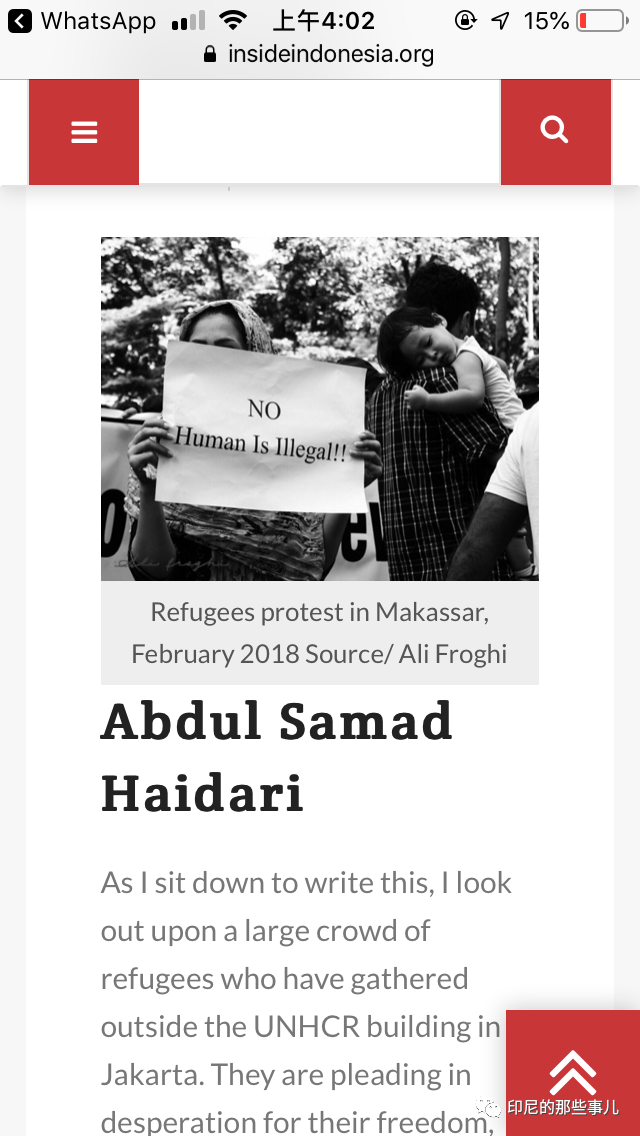 印尼虽然不在《难民公约》里,但一直有庇护难民的传统,只是可做的也不多,他们不会驱赶难民,也不会没事去折磨他们,大部分时候相安无事。联合国难民署在这里设有办公室,为难民提供帮助。但是难民的生活大部分靠难民自己的努力。