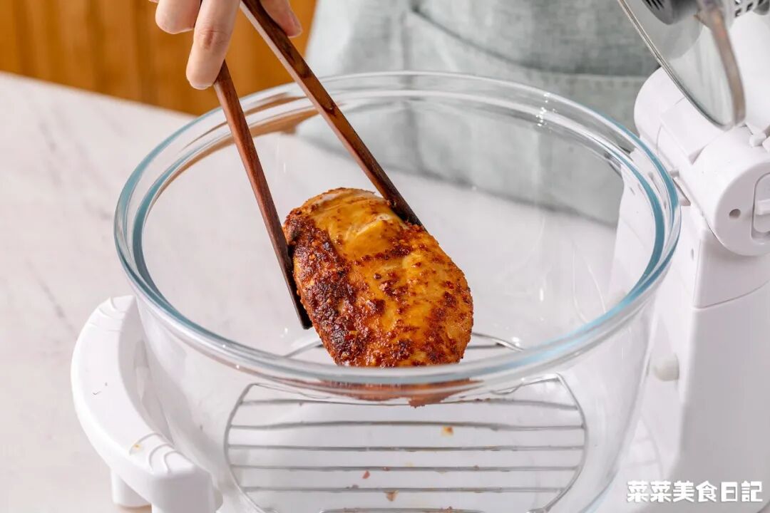 根据烹饪方法的不同,把握好烹制时间也是它香嫩与否的关键。ps1:对比肉的形状大小,可适当增加或减少烹煮时间;ps2:冷藏过的鸡胸肉记得提前取出,否则延长1-2分烹煮时间;ps3:判断鸡胸肉是否熟透的方法为,用筷子插入最厚处,若能轻松插入即是熟透。将腌渍好的鸡胸肉放入耐高温玻璃碗中,盖上湿的厨房纸,微波炉高火加热5-8分钟,中途翻面一次即可。起锅加入1大勺橄榄油,烧至五六成热,放入鸡胸肉单面煎3分钟上色,翻面盖盖,转小火焖焗5-8分钟。起锅加入1大勺橄榄油,烧至六七成热,两面各1分钟,煎上色;送入预热好的烤箱/空气炸锅,150度烤20-25分钟。在电饭煲里倒入65°C左右的热水,放入装着鸡胸肉的耐高温密封袋;密封袋排气拉紧拉链,打开电饭锅的保温模式,煮30-35分钟;煮好后,起锅加入1大勺橄榄油,烧至六七成热,两面各煎1分钟,上色即可食用。2种腌渍技巧,6款迥异风味,4类烹制方法,随你们组合搭配。只要照着做一次,尝一尝,相信你们会对鸡胸肉大有改观!