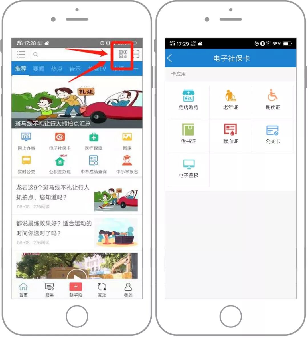 高级实名用户点击“首页”右上角二维码,可快捷进入电子社保卡卡包。![]()