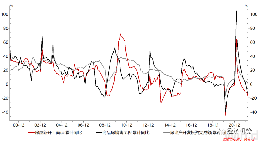 7)房地产下滑趋势进一步恶化。新开工面积累计同比下滑17.5%,较上月跌幅12.2%进一步扩大;销售面积累计同比下跌13.8%,前值下跌9.6%;投资完成额累计同比下跌0.7%,前值增长3.7%。三项数据均连续下滑12个月,接近2020年疫情最低值。