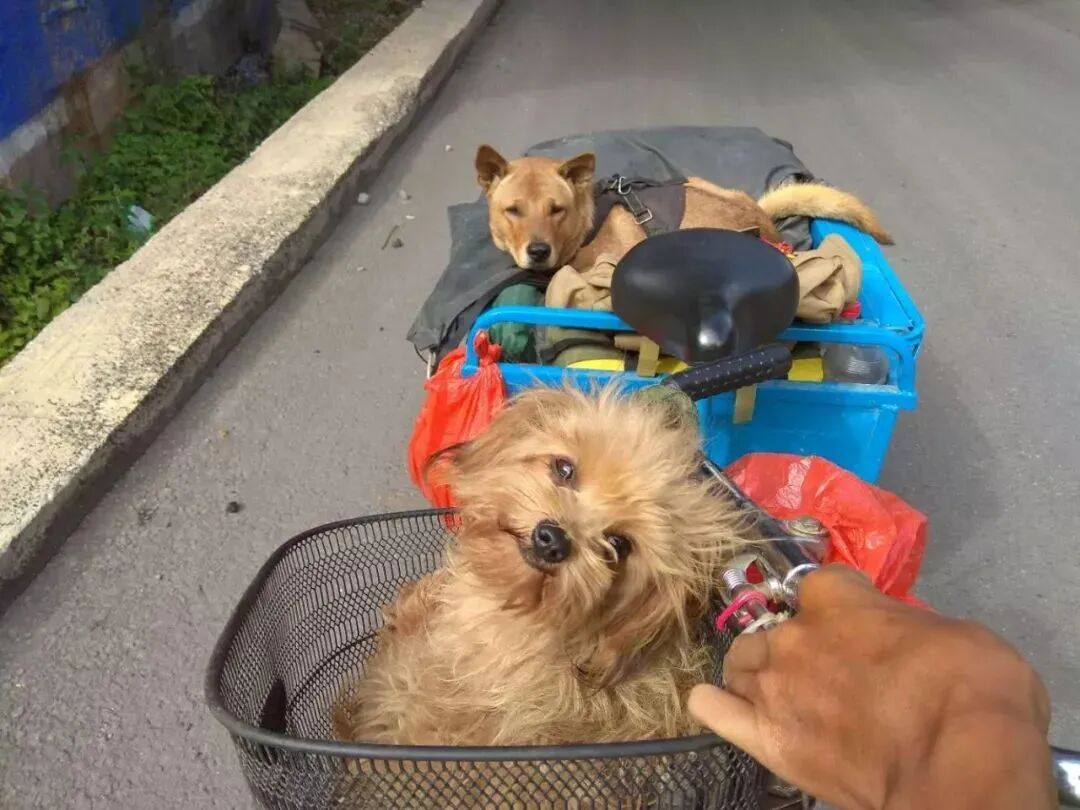 于是,一人两狗一三轮车,阿星正式开始了自己的流浪生活。