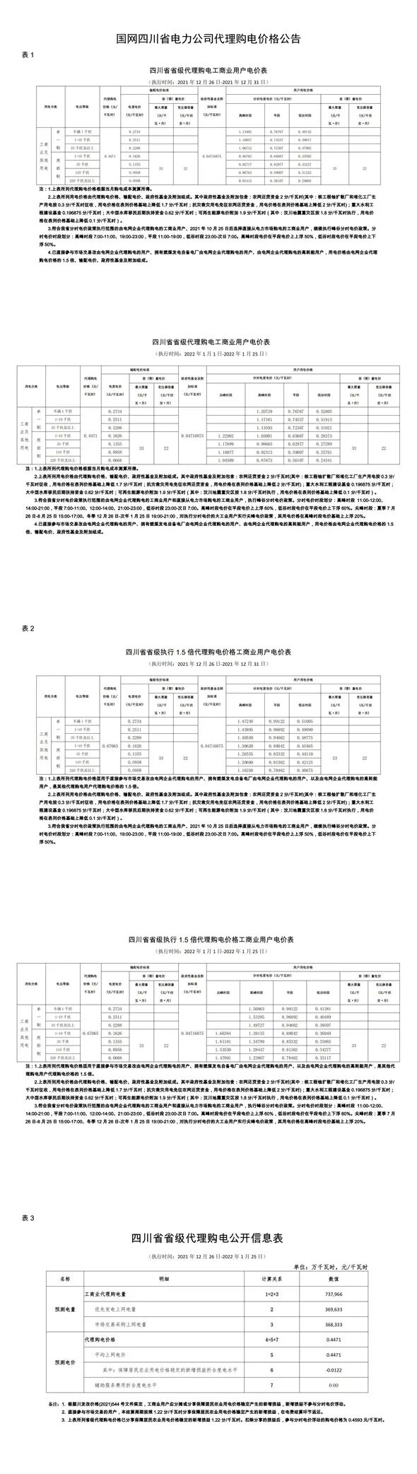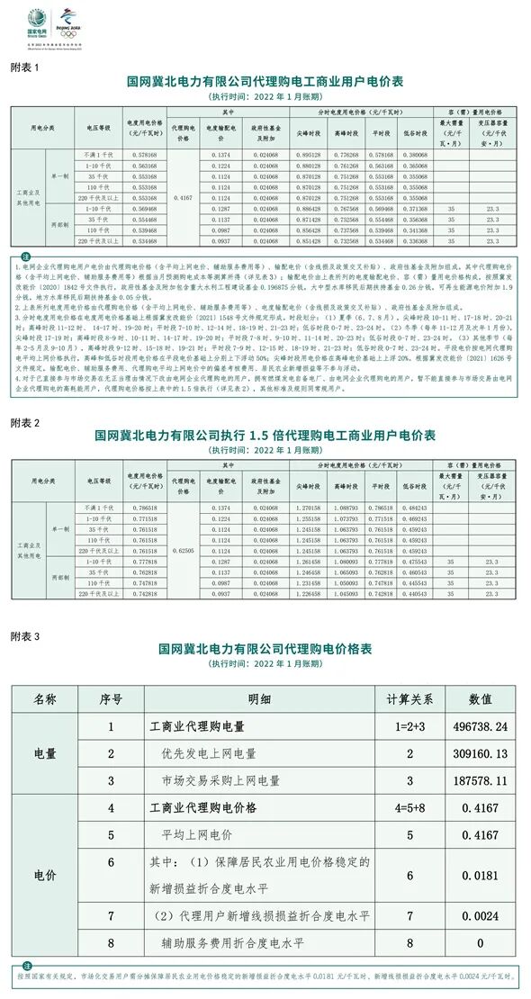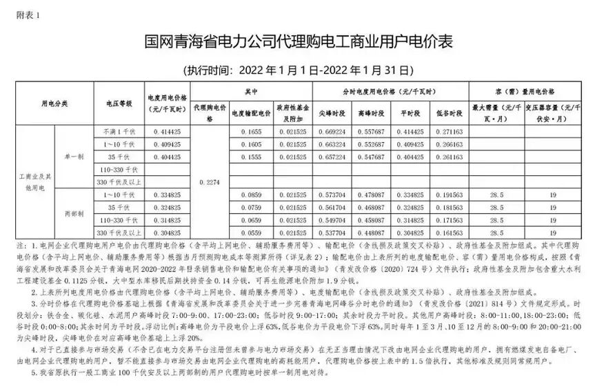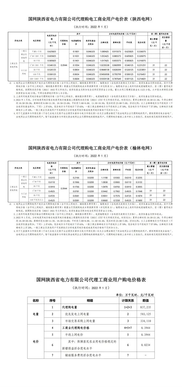 以下附29省市区域1月代理购电电价: