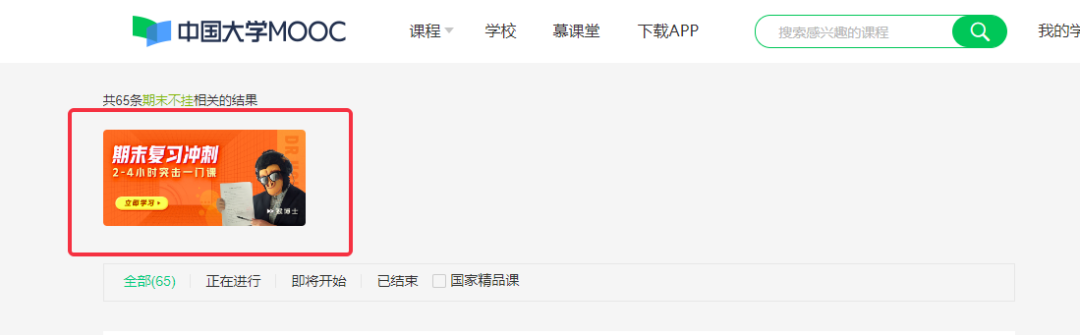 打开中国大学MOOC网页版/APP,搜索【期末不挂】,点击左上角图片,就能进入频道。