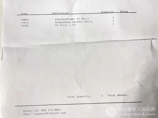 林女士说:“6日后,我收到了T3送来的包裹,但仅有一个包裹。虽然账单上列出了3个商品,但包裹内仅有一个卷发棒,我以为是分开发货,又等了几天,仍未收到吹风机和直发板,于是联系客服。”