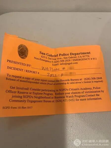 记者13日联络了圣盖博警局,警局发言人Bebecca Gomes表示,她将查阅出警记录和通报案件进展。截止至截稿前,警方未有新的进展回复。