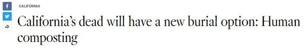 据洛杉矶时报9月18日报道 根据加州州长加文·纽森(Gavin Newsom)上周日签署的一项法案,加州将于2027年开始允许一种被称为“人体堆肥(human composting)”的新埋葬方法。