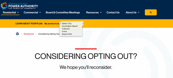 据记者了解,橙县电力管理局(OCPA)是一家非营利公共机构,致力于减少橙县的碳排放,今年4月推出商业服务,主要为橙县居民提供清洁能源等可再生能源,但电费价格相对南加爱迪生电力公司(SCE)更贵。
