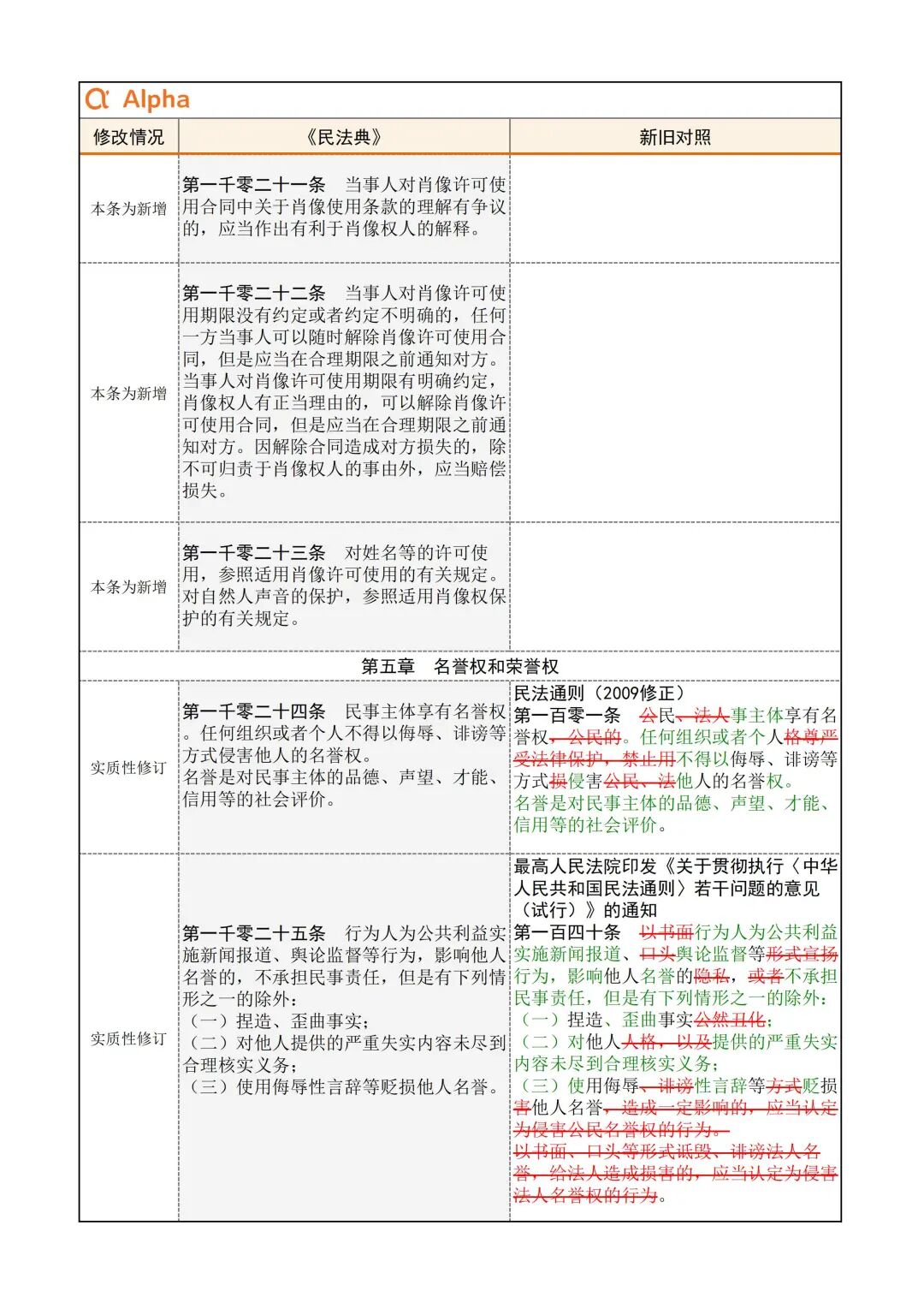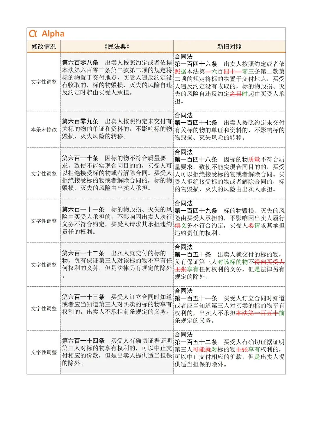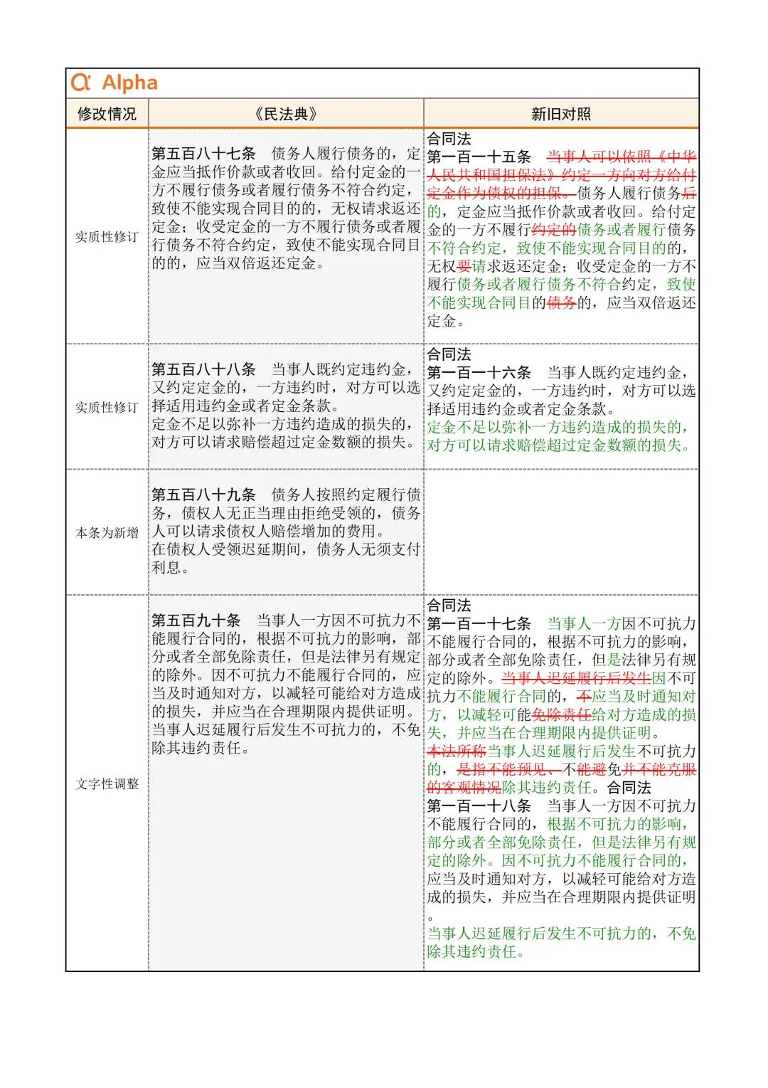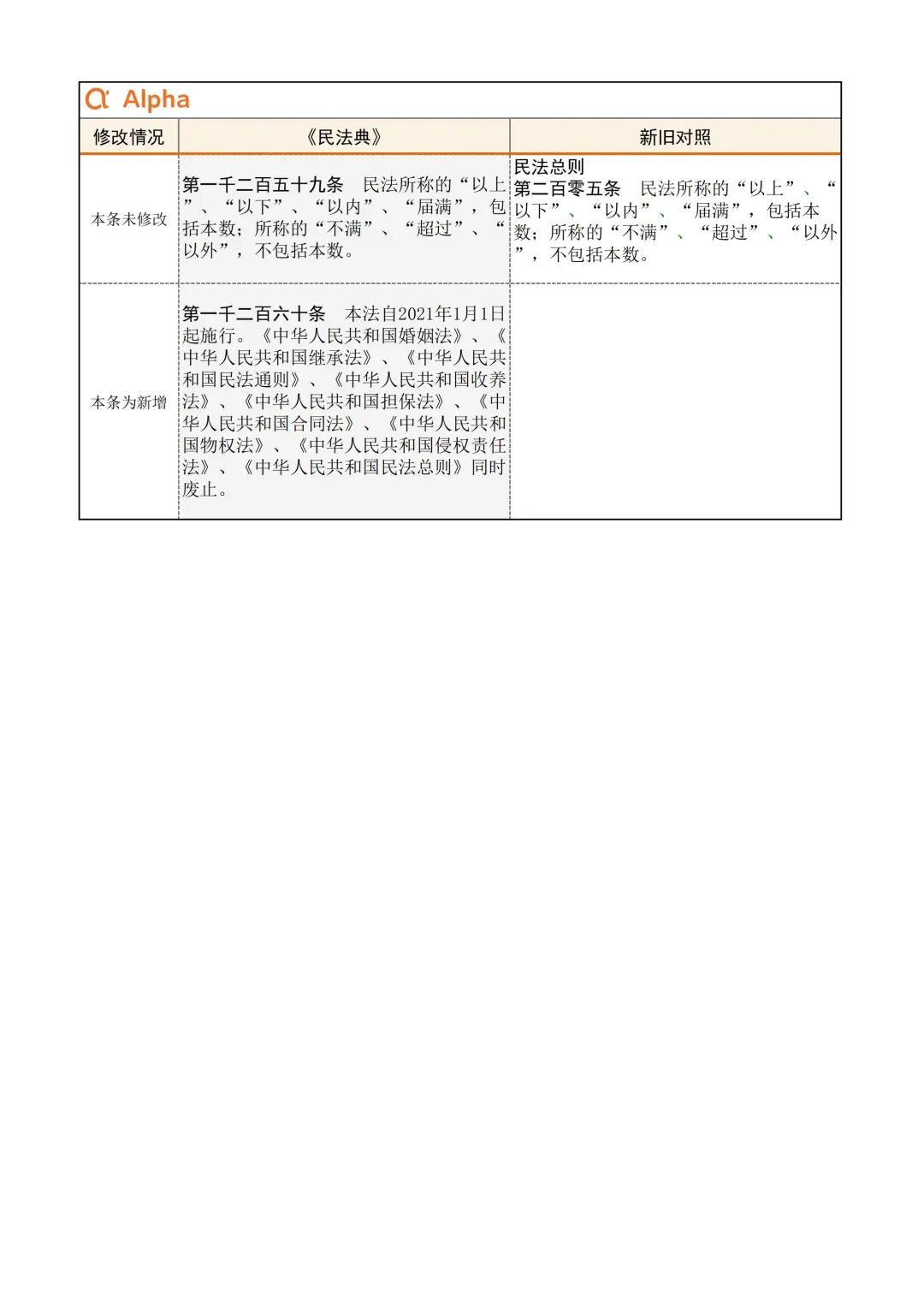 为便于大家学习,民法典君引用了Alpha 大数据专门开发了《民法典》新旧对照表,希望在《民法典》实施初期,帮助大家一起做好法律适用的新旧衔接。