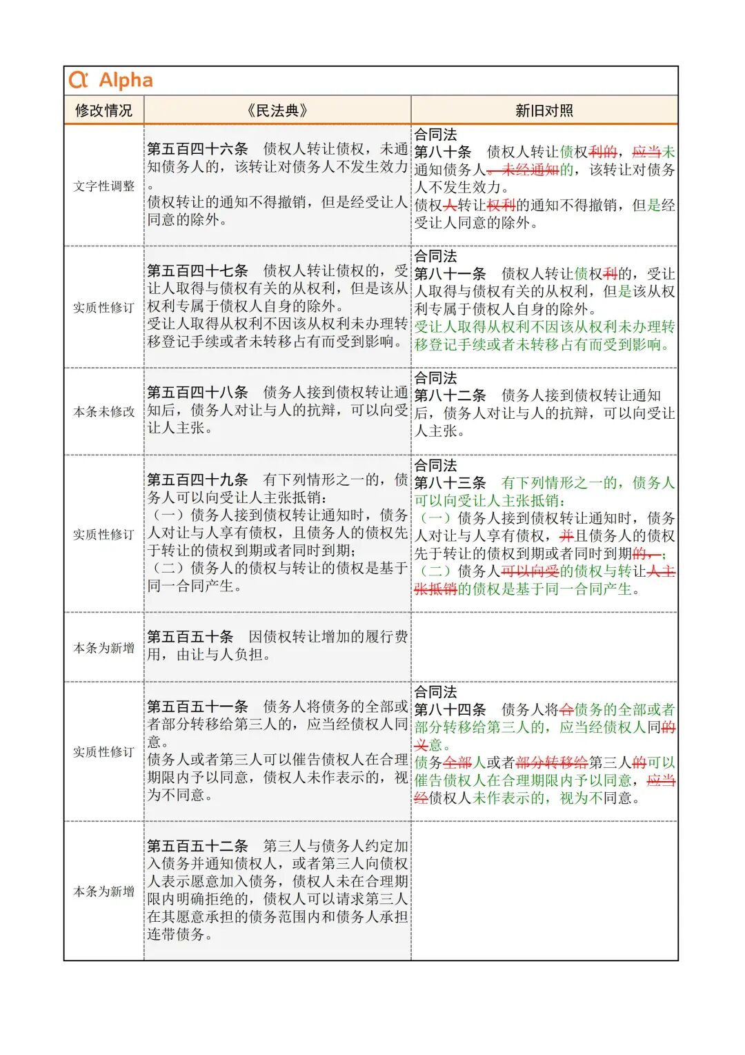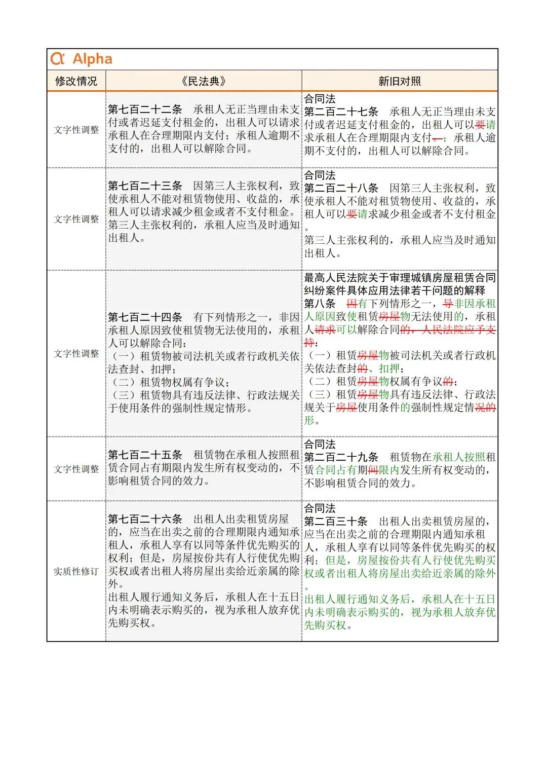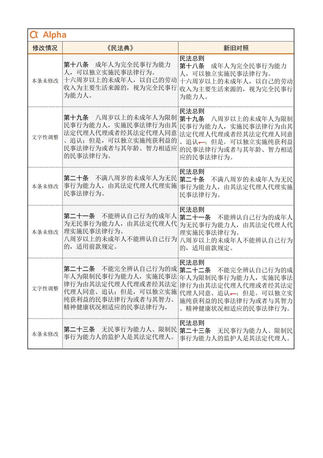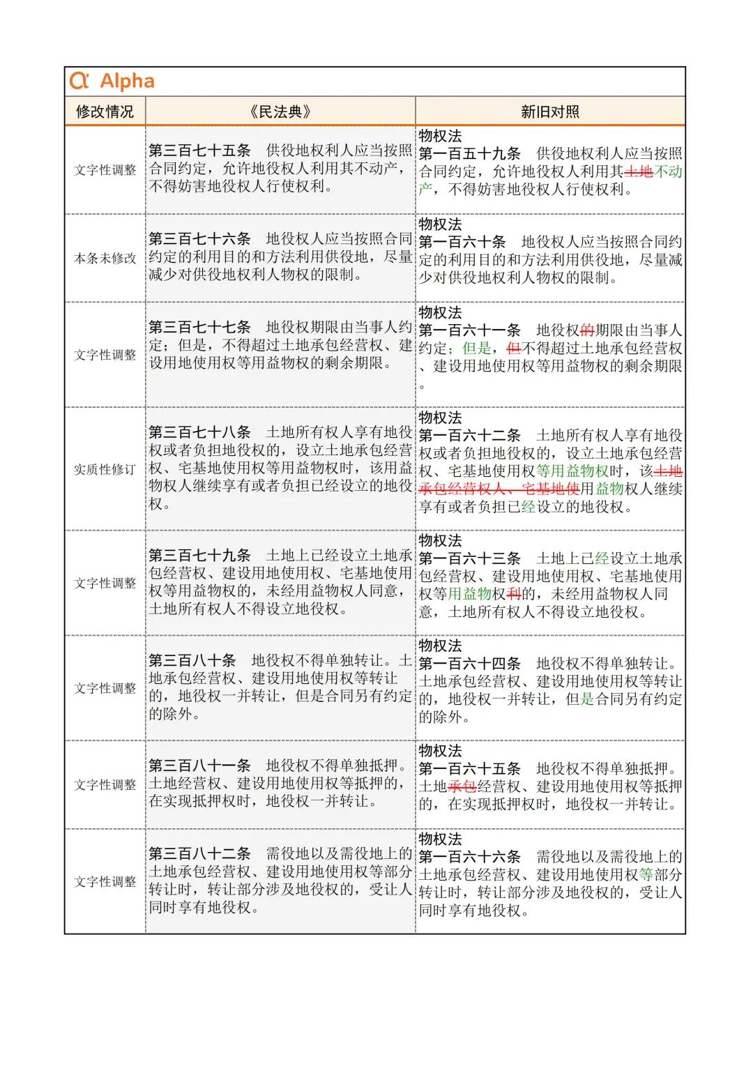 为便于大家学习,民法典君引用了Alpha 大数据专门开发了《民法典》新旧对照表,希望在《民法典》实施初期,帮助大家一起做好法律适用的新旧衔接。