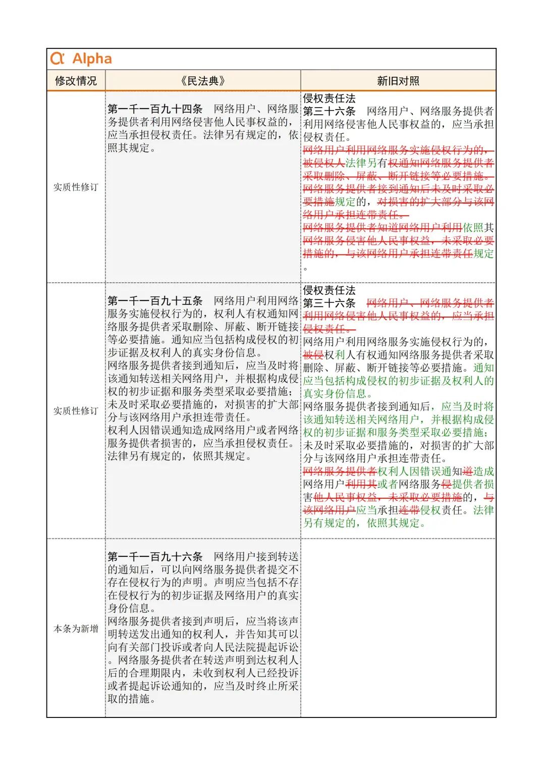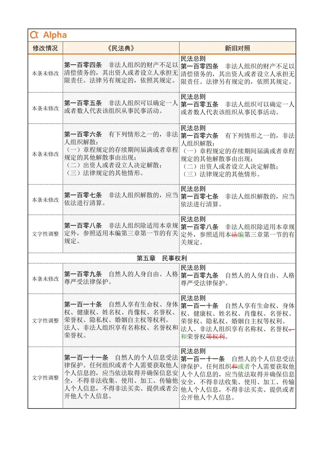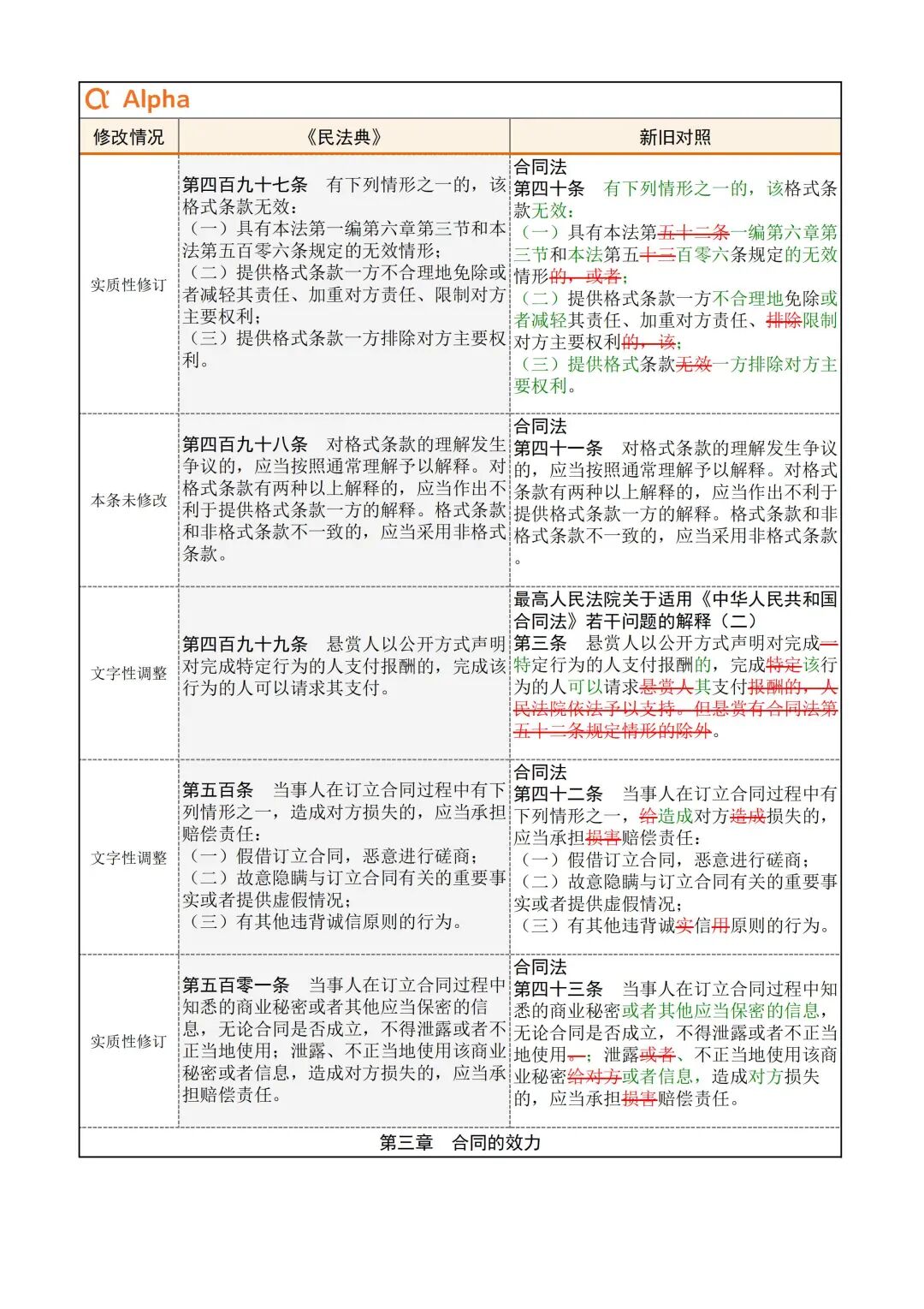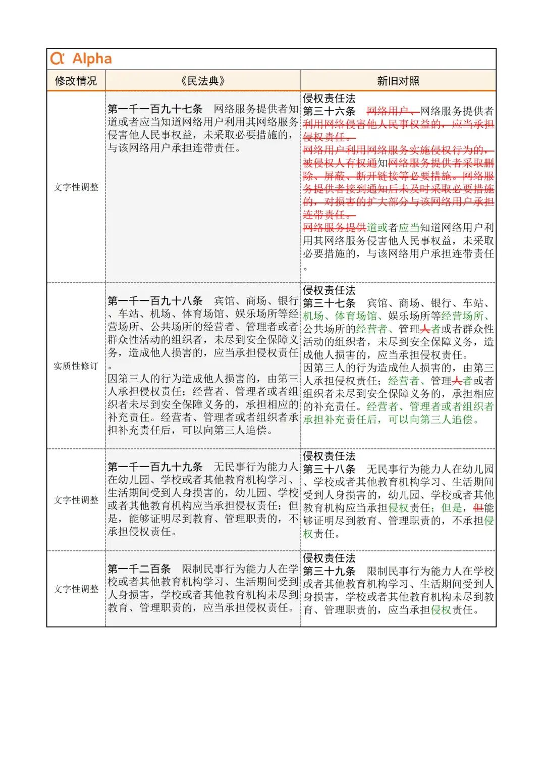 为便于大家学习,民法典君引用了Alpha 大数据专门开发了《民法典》新旧对照表,希望在《民法典》实施初期,帮助大家一起做好法律适用的新旧衔接。