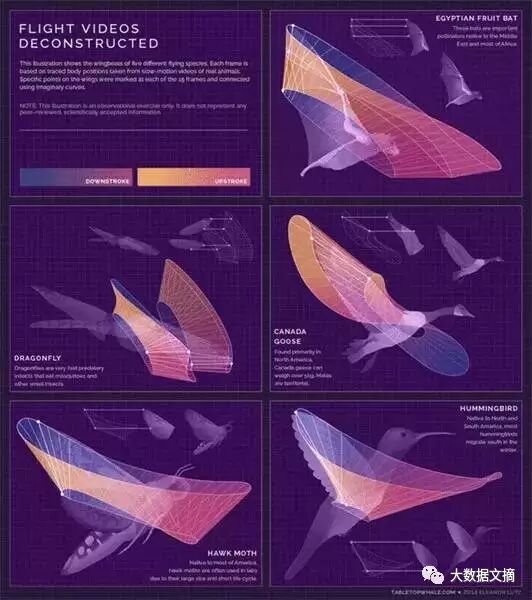 不同动物在飞行时翅膀的飞行轨迹