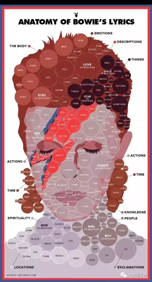 大卫·鲍伊(David Bowie)写歌的词频分析
