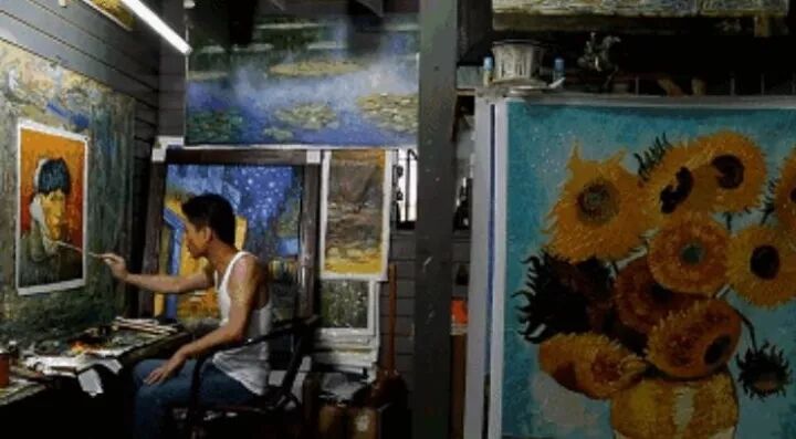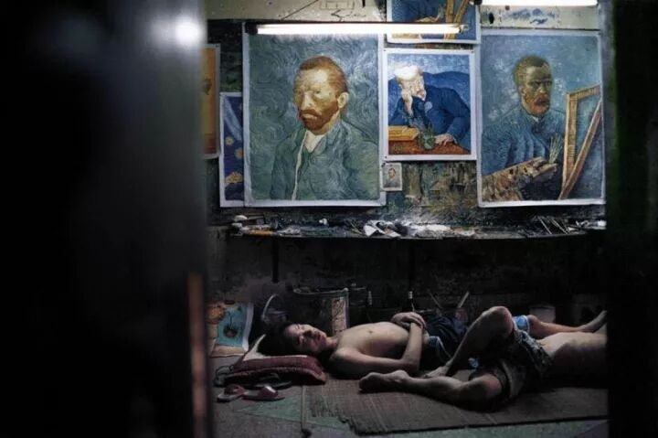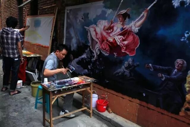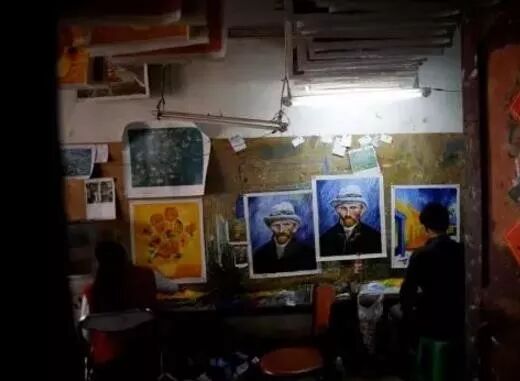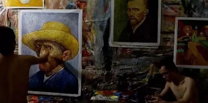 两万多个人,四万多只手无不做着临摹名画的行当,挥毫落纸,没日没夜,热枕背后或许有理想,有艺术,但更多只为吃饭。