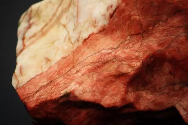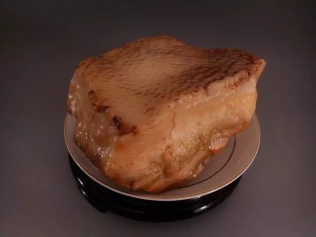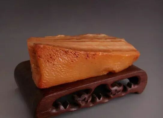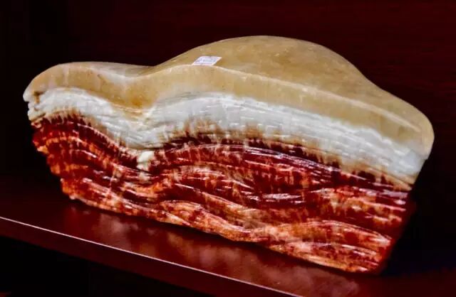 极品肉形石的“肉”,肥瘦层次分明、肌理清晰、毛孔宛然,色泽油亮可人,细腻滑润,有一种百看不厌、欲食不能而垂涎不已的视觉冲击力和食欲,可以称为奇石中的人间珍品,价值连城!