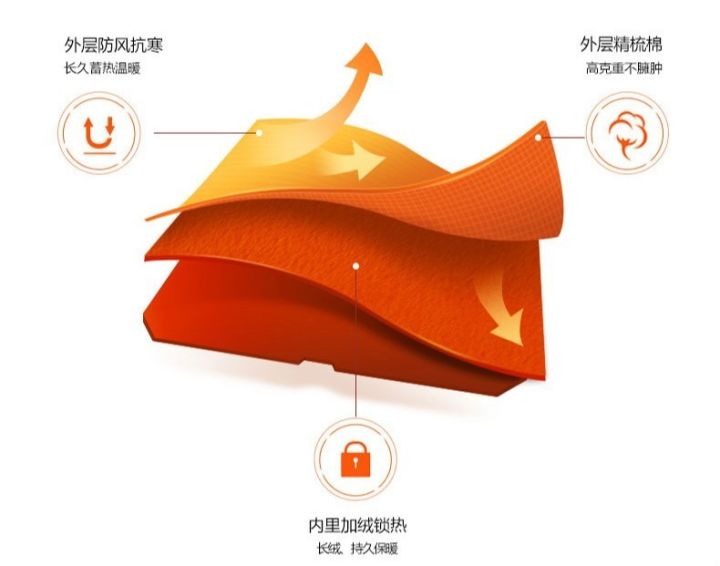 这样超浓密的考拉绒防止热量的流失,达到很好的保温效果。内里蓄热保温考拉绒,更细更密;外层采用纯棉材质,锁热不漏风,柔软细腻。