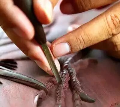 斜刀在花草交界夹角处,用其它刀很难有效清理干净死角,使用斜刀尖角加以腕部劲力,可有效剔除毛边。