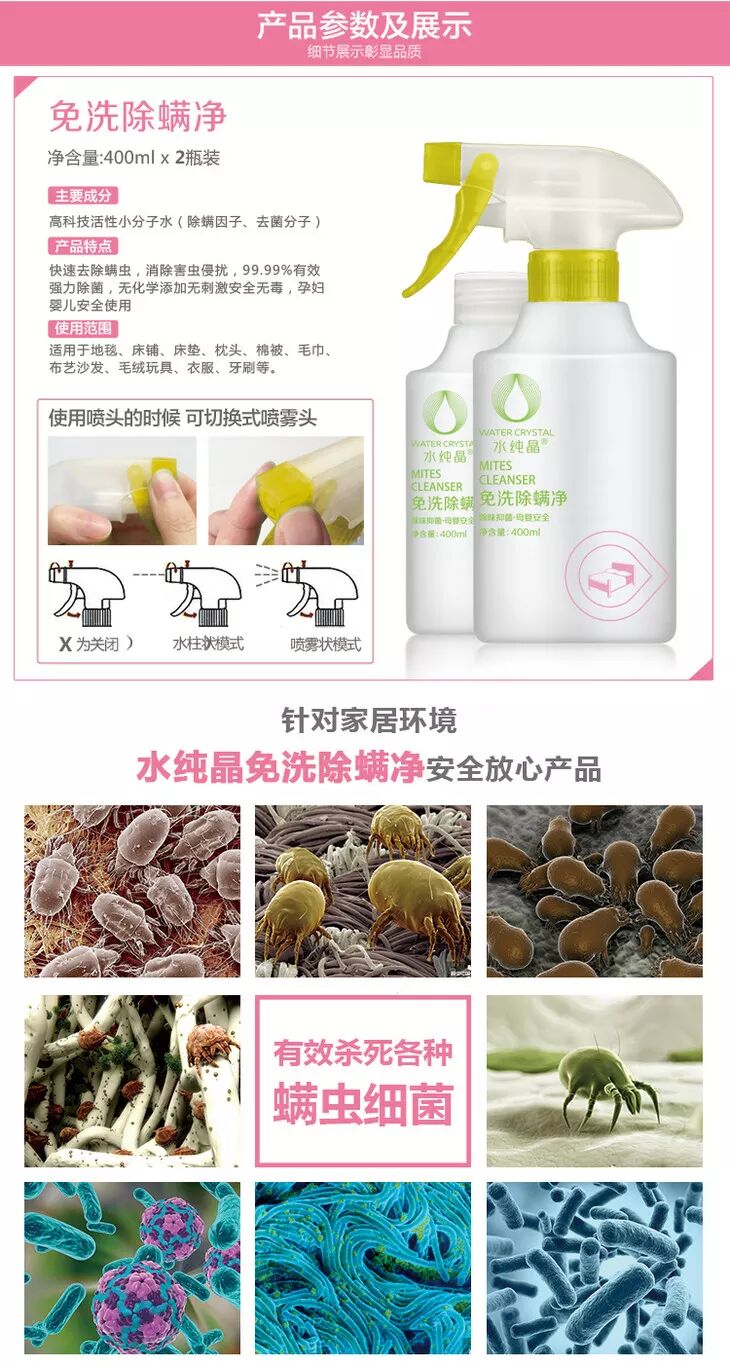 而且对人体无害的除螨喷雾。