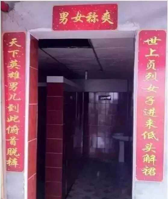 另外,还有厕所门口贴的对联,也能让人笑掉大牙,赶紧看看!