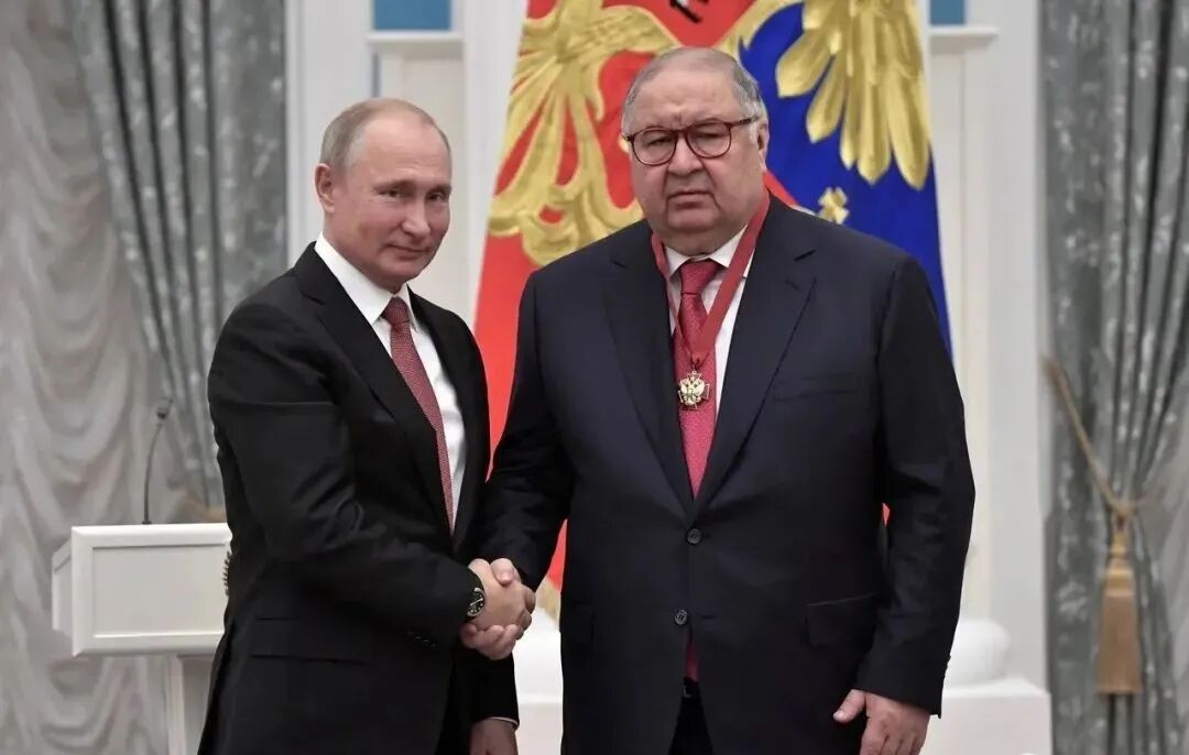 制裁名单包括尤斯马诺夫(右),他是俄罗斯最富有的人之一,也是普京(左)的亲密盟友