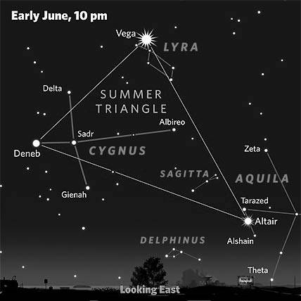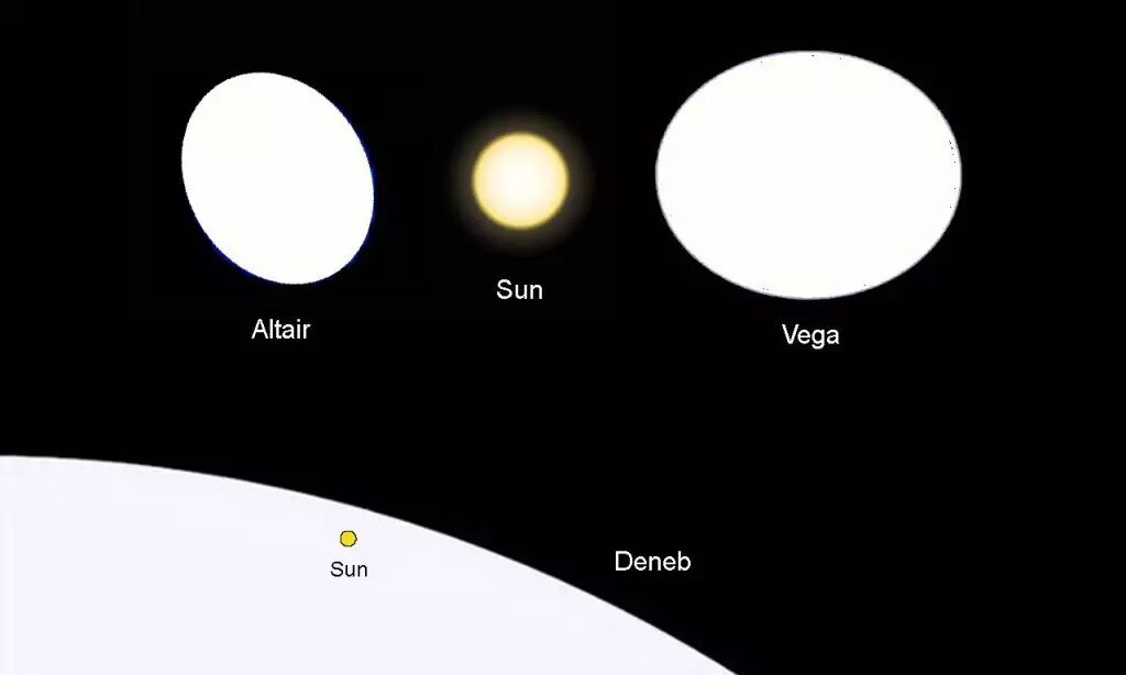 牛郎星(Altair)、织女星(Vega)和天津四(Deneb)构成的夏季大三角