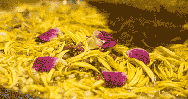 伴着一曲《平湖秋月》,两盏淡酒,静看花瓣沉浮,待清香渗入汤内后,将鲜鱼片、生肉片、鸡片等入锅,待成熟时,取少量蘸汁细细品味,菊花的幽香融入食材中,浑然一体,芬芳扑鼻,诗意袭人。