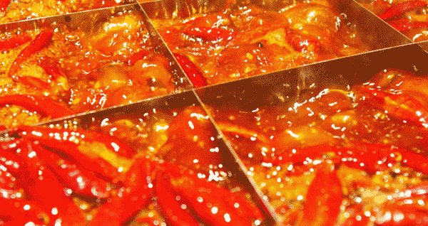 等到火锅水汽逐渐氤氲,锅面就仿佛脸红扑扑的重庆妹子,跃跃欲试地想要随着翻腾的锅面赶紧来个酣畅淋漓、尽情尽兴。等到煮火锅时,躁动的开水上下翻腾着各式各样的红辣椒,毫不羞涩地露出本真的呛辣又醇厚的味道,瞬间刺激身上所有的毛孔,引人陶醉其中、欲罢不能。