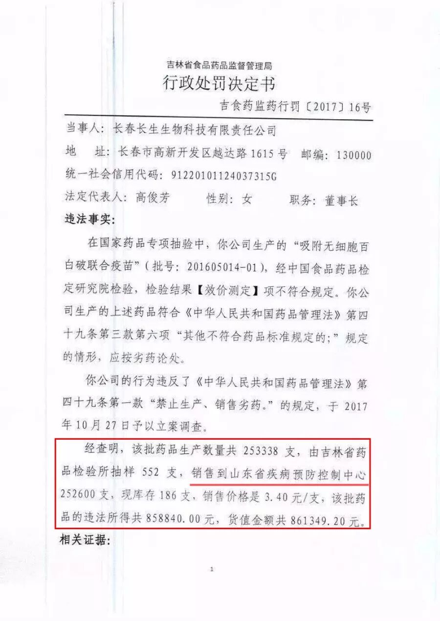 这几天,一场“疫苗案”将全国的目光聚焦到山东。2017年11月3日,长春长生生物科技有限公司生产的批号为201605014-01的疫苗效价指标不符合标准规定,时隔近9个月后,吉林省食药监局在其官网公布了对于长春长生生物科技有限公司的处罚决定书——