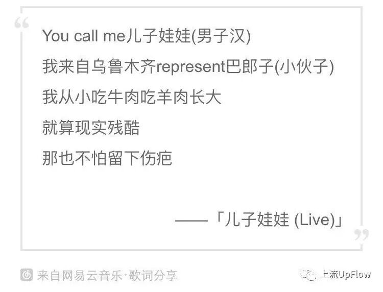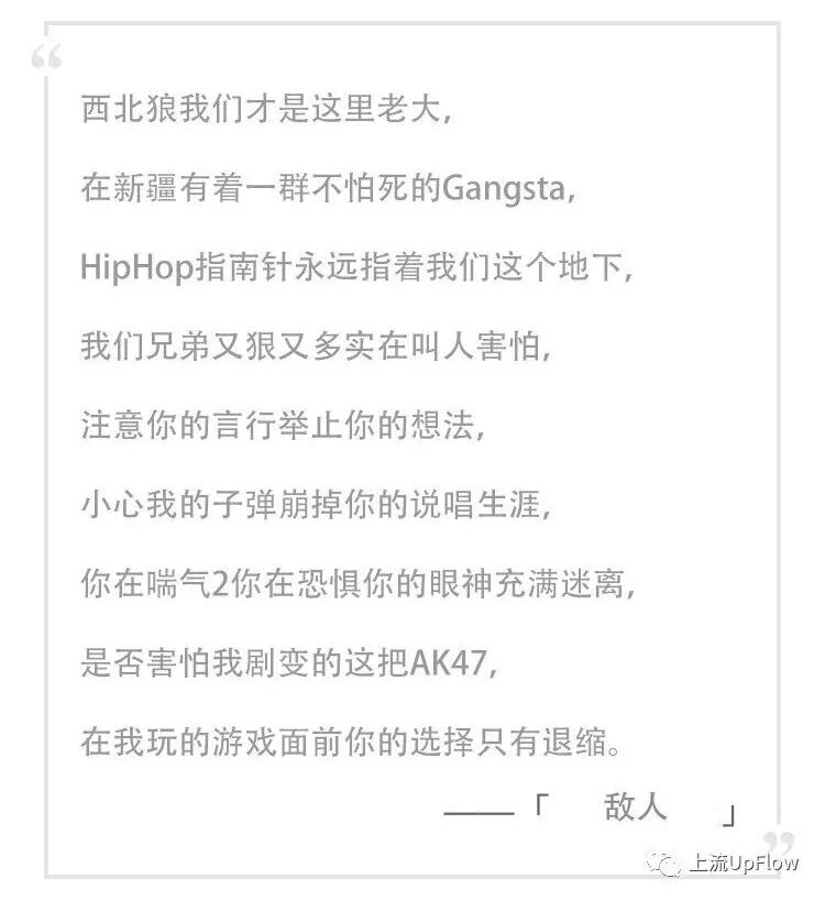 他的这个观点其实还挺有说服力的,因为说唱的起步确实是始于对西方说唱的模仿,维吾尔话跟英文听起来确实有那么一点相似……按照这个观点,新疆的rapper们就更容易接受西方说唱作品的特点并加以发挥。