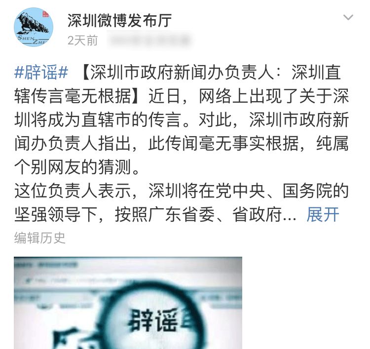 ▲深圳市政府新闻办发布辟谣,截图来源微博