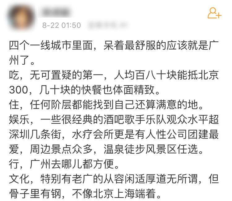 几乎所有的一线城市居民都有着极为浓烈的土著情怀,尤其在广东以北都是北方的广东。他们愿意接纳任何人来广州找一个合适的碗吃饭,但却绝对不会选择端起别人家的碗喝一口汤(包括深圳)。