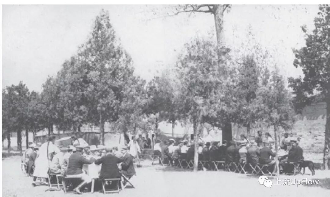 ▲外国人参加赛马会后在跑马场附近聚餐 图片来源:《天津往事》