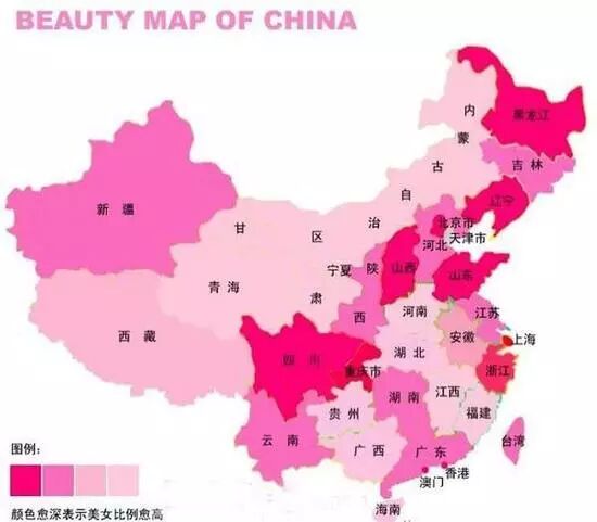 ▲中国美女分布统计图 | 来源:扬州日报社网站