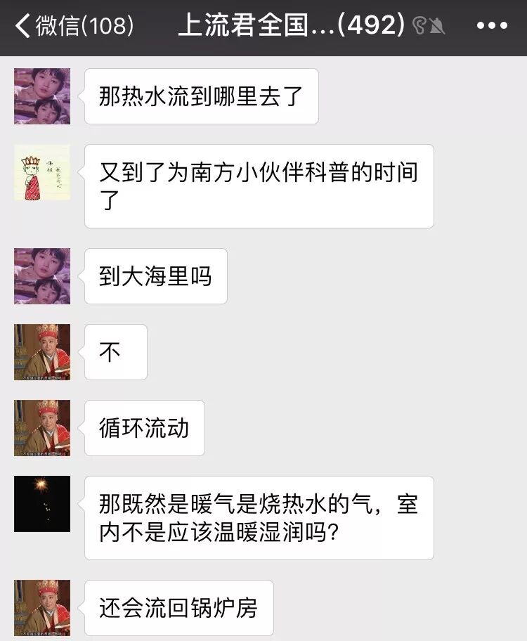 上流君的聊天群里甚至有个小可爱觉得暖气里的水最终流向了大海