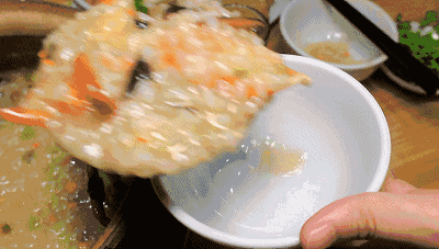 大学的时候在广东实习,有一次加完班已经是深夜,回去的路上看到街边一家潮汕砂锅粥,便和同行的朋友一起进去点了一锅黄鳝蟹肉粥。