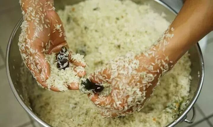 ▲在米中混入皮蛋 | 来源:知乎@24季