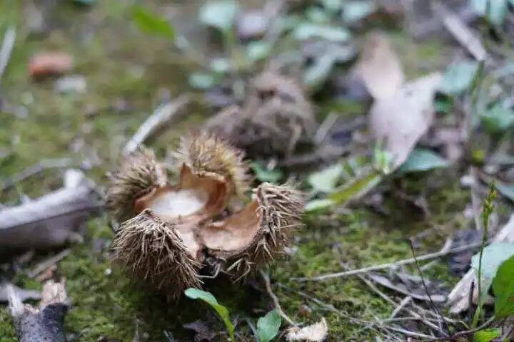 栗子树的果子,大家比较熟悉,我们常吃的板栗就被包裹在这多刺的壳斗内,当果实成熟时壳斗裂开散出。大家可以在分类区找一找像刺猬一样的栗子壳,不过捡的时候要小心尖刺。