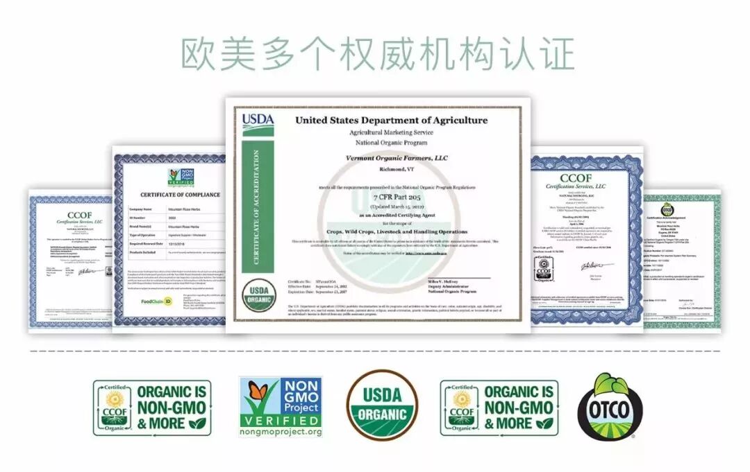 有机农场种植的纯天然植物萃取成分,欧美国家权威有机认证。