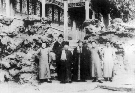 傅斯年(左二)与陈寅恪( 左三)等史语所人员在北平北海静心斋留影