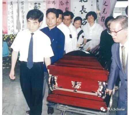 门弟子扶灵;覆旗官执行覆旗;蔡仁厚先生报告牟先生的学行事略