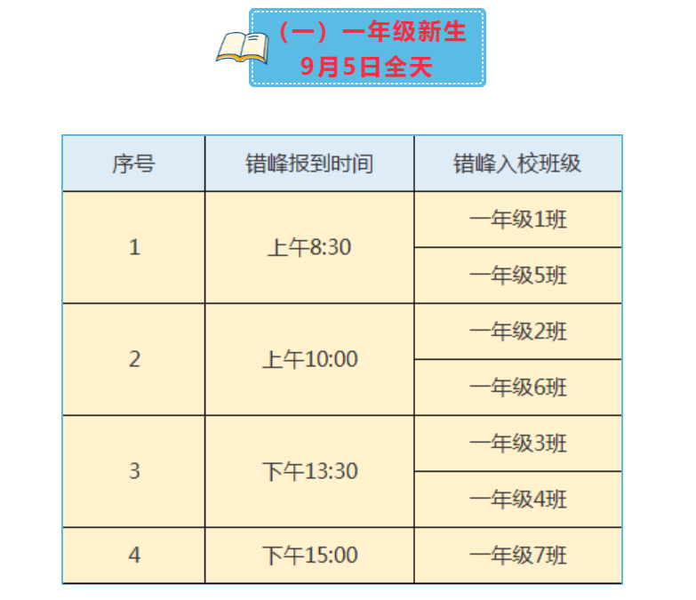 1.9月5日高中年级错时错峰进行报名开学;