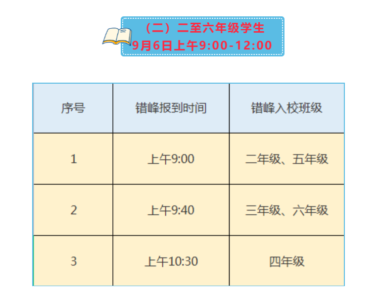 2.9月6日初中年级错时错峰进行报名开学;