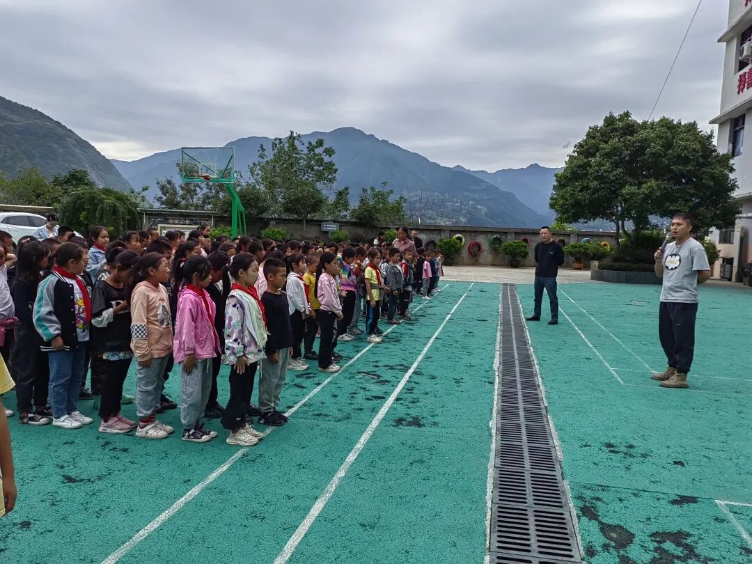 ✪汉源县富林镇第五小学安全有序撤离学生到操场,通过开展游戏对学生进行心理疏导。