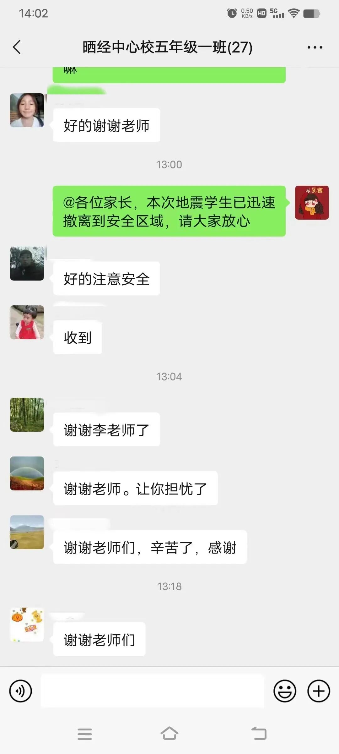 ✪汉源县唐家镇富春小学教师在班级群向家长报平安。
