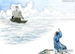 望着你的小船驶向茫茫云水,频频挥手惜别泪水沾湿佩巾。