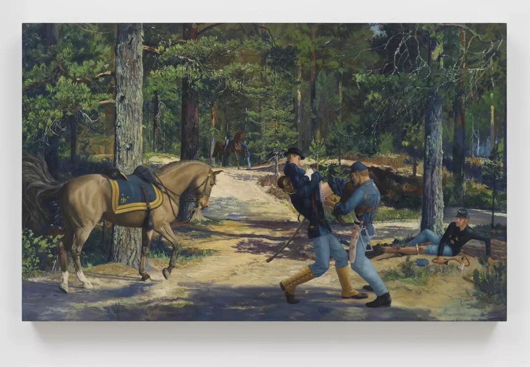 P.P.O.W 的展位以对传统权力结构的挑战为母题,涉及种族、性、殖民、父权以及艺术史本身。希拉里·哈克尼斯(Hilary Harkness)展出了她正在进行的“阿拉贝拉·弗里曼系列”(Arabella Freeman Series),“将巴洛将军重新想象成一位向军团隐瞒身份的跨性别者”。这种隐瞒在《战斗中的诞生》(Birth in Battle, 2022)超写实的场景中宣告结束:受伤的巴洛接受引产,部队士兵惊讶地看着一位战地医生为其接生。P.P.O.W 展位上多位艺术家的作品得以售出,价格均在2万至60万美元之间。