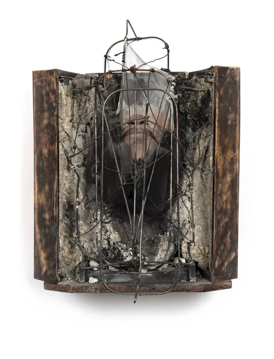 在展会的另一个展位上,Kohn 展示了两位艺术家的组合作品。尽管创作时间相隔60年,但二人都共同关注种族、身份、宗教和美国性的问题:一位是西海岸的艺术巨头布鲁斯·康纳(Bruce Conner),另一位则是洛杉矶的新兴艺术家奇芬·托马斯(Chiffon Thomas)。这类跨代的艺术对话总是艺博会的亮点,这次更格外吸引人的眼球——在博览会的第一个小时内,托马斯的四件作品就已经售罄,价格从2.2万美元到4.5万美元不等。