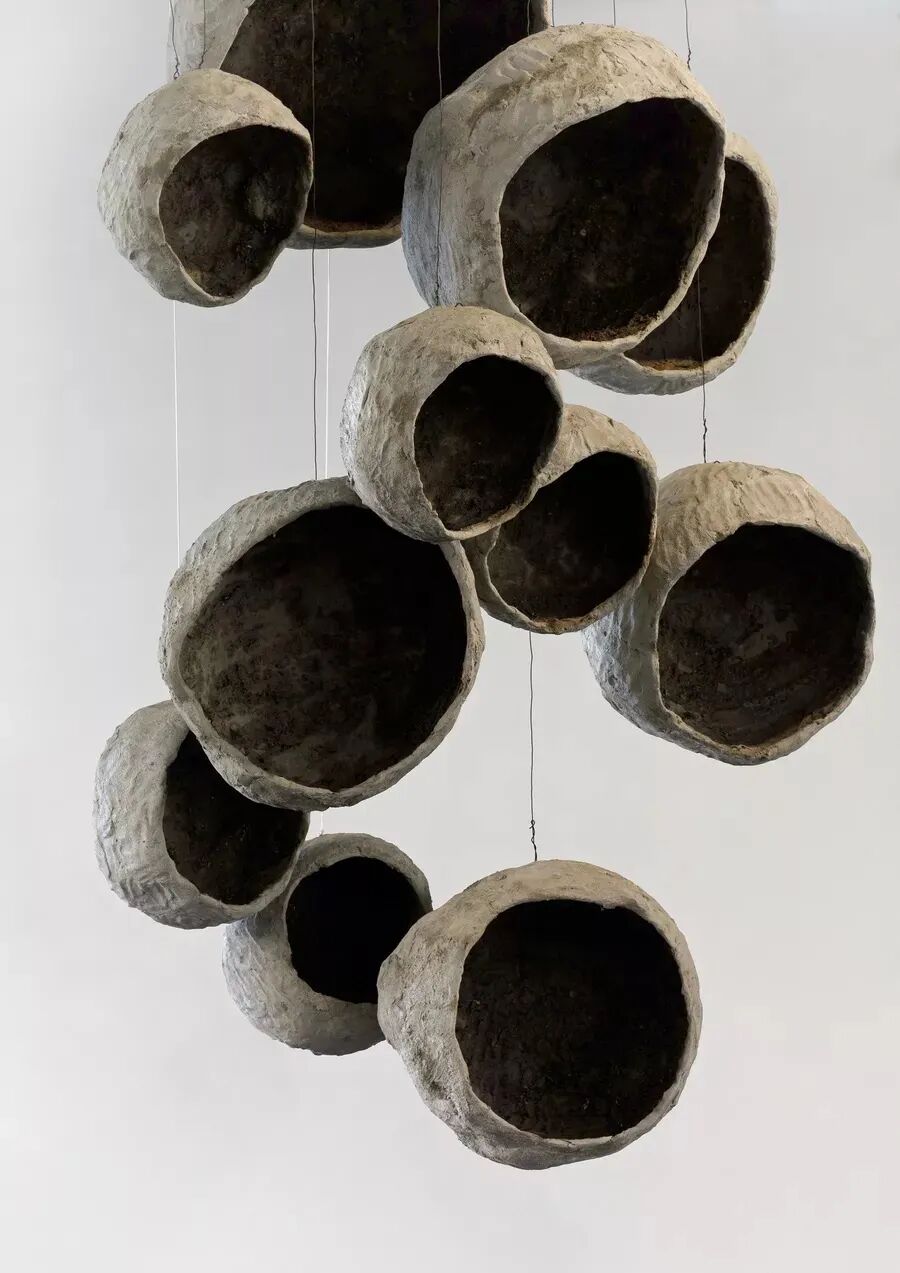来自纽约切尔西的 Tina Kim 画廊以在美国推广在世韩国艺术家及韩国艺术家的遗产而闻名。在画廊的故乡,除了 Davide Balliano、Tania Pérez Córdova 和 Ghada Amer 等外国艺术家之外,Kim 主要展出的是一系列韩国艺术家的作品。已故画家金昌烈(Kim Tschang-Yeul)在麻布上精心渲染的水滴诗意画,被放置在朴栖甫(Park Seo-Bo)用凸版印刷和传统韩纸制作、以黄紫尘土色调为主轴的幻觉抽象画旁。在年轻的驻首尔及阿姆斯特丹艺术家李美来(Mire Lee)的悬空混凝土雕塑《Eyes of the Grapes》(2022)中,微妙的细节体现在了大尺度的作品之上——形态各异的空心雕塑悬挂于顶端,其幽暗的阴影则投射到了展位的角落。