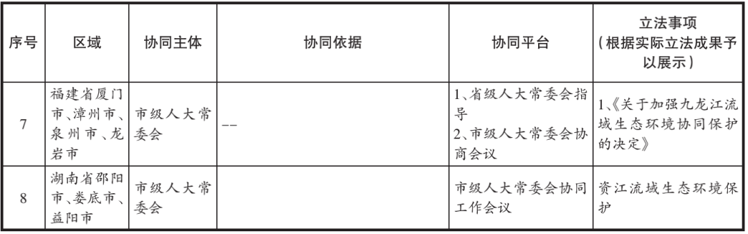 同时,这里需就东三省的特殊情况予以特别说明,其最开始的协同立法主体是由政府所主导的,每年年底由各方轮流召开三省法制办主任联席会议,研究确定立法协作项目和论证项目。在之后协同立法发展的过程中,东三省区域也在寻求人大层面的协同立法,以期提高协同立法成果的影响效用,更好促进区域之间的协作发展。总之,目前的区域协同立法形成了地方人大全面主导协同立法的局面。