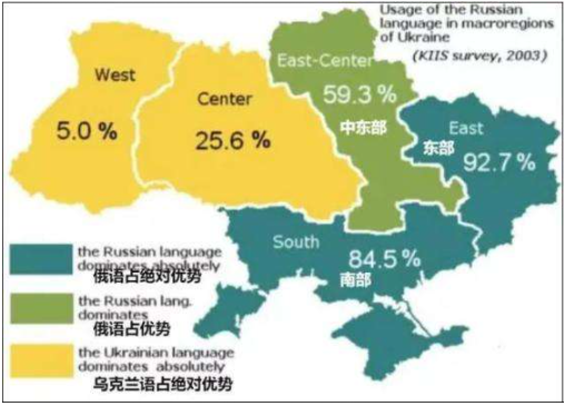 ◇ 俄语人口在乌克兰各地区的占比