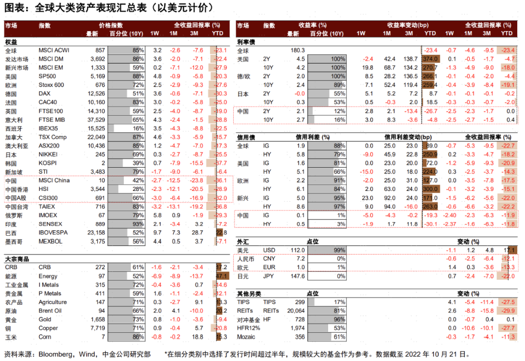 过去一周全球大类资产表现(2022/10/14-2022/10/21)